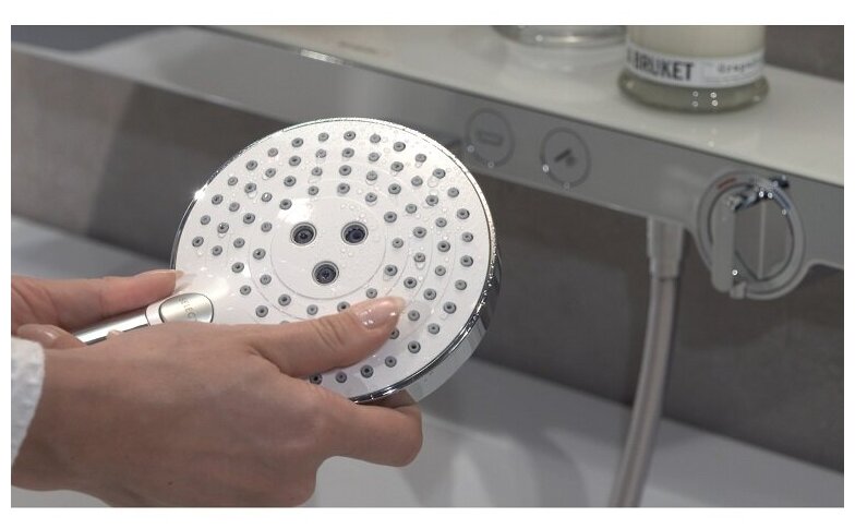 Смеситель для ванны Hansgrohe ShowerTabletSelect 13183000 с термостатом - изготовлен в современном дизайне, что позволяет установить смеситель в комнате любой стилистической направленности. Утонченные линии и продуманный до мелочей дизайн станет роскошным украшением вашей комнаты. Характеристики: Материал - латунь с хромовым покрытием. Поверхность полочки - стекло. Выступ 192 мм. Расход воды изливом на ванны при 3 барах: 20 л/мин. Расход воды ручным душем при 3 барах: 15 л/мин. Мин. рабочее давление - 1 бар, макс. рабочее давление - 10 бар. Картридж термостата, клапан Select - изменение типа струи. Предохранительный ограничитель при 40�C. (термостат) Картридж термостата, запорный и переключающий вентиль. Регулируемое ограничение температуры. Клапан обратного тока воды. С шумопоглатителем. Стандарт подводки - G 1/2. Величина соединения DN15. Грязеулавливающий фильтр входит в комплект поставки. Технология CoolContact - термостаты, оснащенные данной технологией охлаждения, не нагреваются. Корпус всегда остается приятно прохладным, поскольку холодная вода внутри него направленно проходит к его поверхности. Технология QuickClean - позволяет мгновенно удалить загрязнения и известковый налет на смесителях и душах. Это происходит благодаря гибким силиконовым вставкам на аэраторах и форсунках. Технология AirPower - позволяет смешивать воду с воздухом, благодаря чему струящаяся по телу вода дарит приятные ощущения. Ведь вода, обогащенная воздухом, делает капли объемнее, легче и мягче. Габариты (ШхВхД) - 70х8,5х21 см. В комплект поставки входит: смеситель для душа с термостатом, угловой соединитель для шланга, кнопки ручной душ и ванна, грязеулавливающий фильтр.