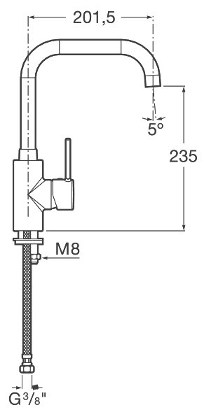 | Комплектация | Смеситель в сборе, гибкая подводка, монтажный комплект |