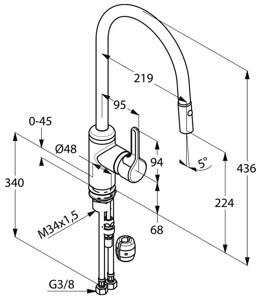 | Высота смесителя | 436 мм |