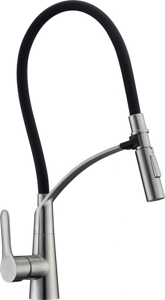Смеситель для кухни с гибким изливом. Материал: нержавеющая сталь. Исполнение: сатин. Длина излива: 20 см. Высота излива: 16,2 см. Механизм: керамический картридж. Отверстия для монтажа: 1 отверстие. Тип подводки: гибкая 1/2". Оснащение: без донного клапана, гибкий излив с переключателем аэратор/душевая струя. Рабочий интервал давления в водопроводной сети: 0,5-6,0 Атм.