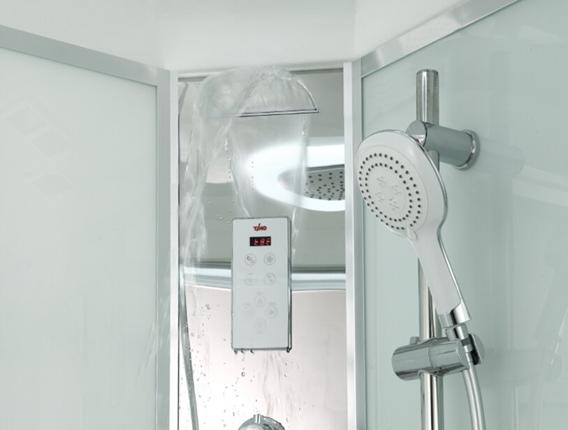 Timo Comfort Т-8870 Fabric Glass душевая кабина (170*88*220), Комплектация: сенсорная панель управления,FM радио, подсветка верхняя, электр. вентиляция; стеклянная полочка; термастатический четырехрежимный смеситель. Поддон: 100% цельный акрил армирован стекловолокном, на усиленном каркасе. Сливная система clik-clak. Сифон 50mm. Экран. Задние стенки: закаленное ударопрочное стекло 5мм, светлого оттенка. Передние стекла: матовое (Fabric Glass), 5мм, закаленное, ударопрочное. Конструкция дверей: раздвижная. Центральная панель выполнена из полированной нержавеющей стали. Крыша: акриловая. Роллики, ручки: хромированные из металической стали. Профиль: анодированный, алюминиевый, хромированный, глянцевый.