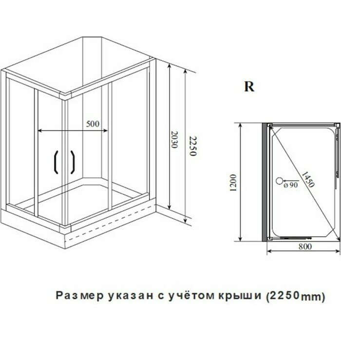 | ВКоробке | Душевая кабина - 1 шт. Душевой гарнитур с полкой - 1 шт. Сифон с выпуском и гофрой - 1 шт. Инструкция - 1 шт. |