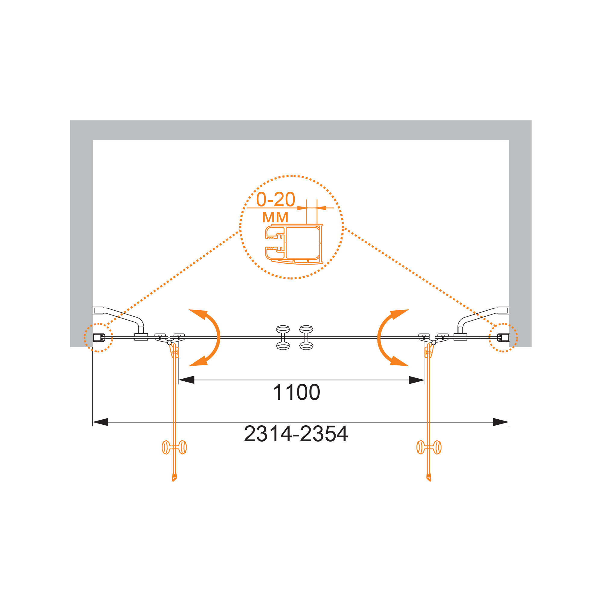 Душевая дверь в нишу Cezares Elena W-B-22 240 см. Душевая дверь в нишу с двумя распашными створками станет прекрасным дополнением любой ванной комнаты. Превосходно будет сочетаться в интерьере любой стилистической направленности за счет изысканных форм и плавных линий.