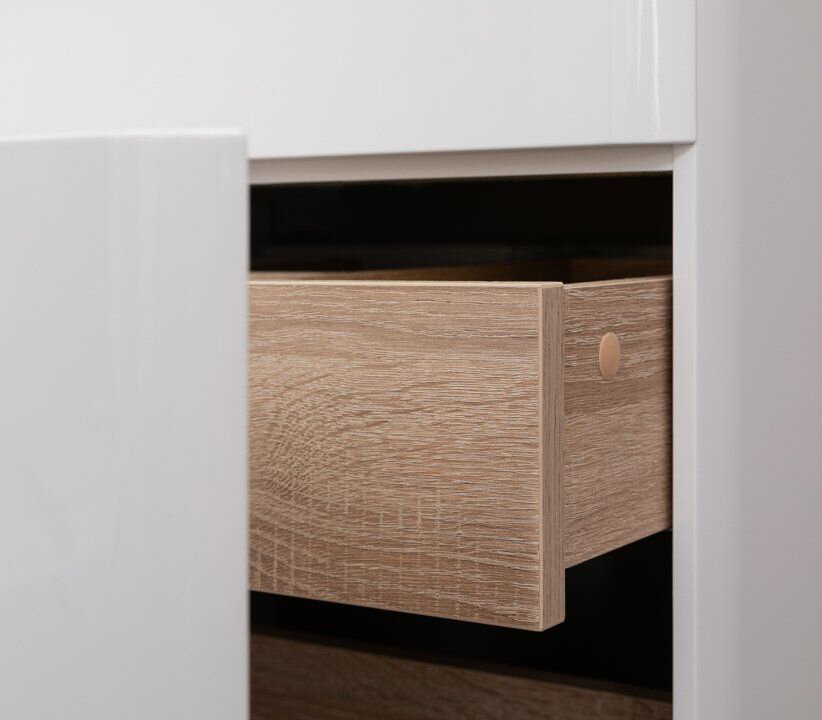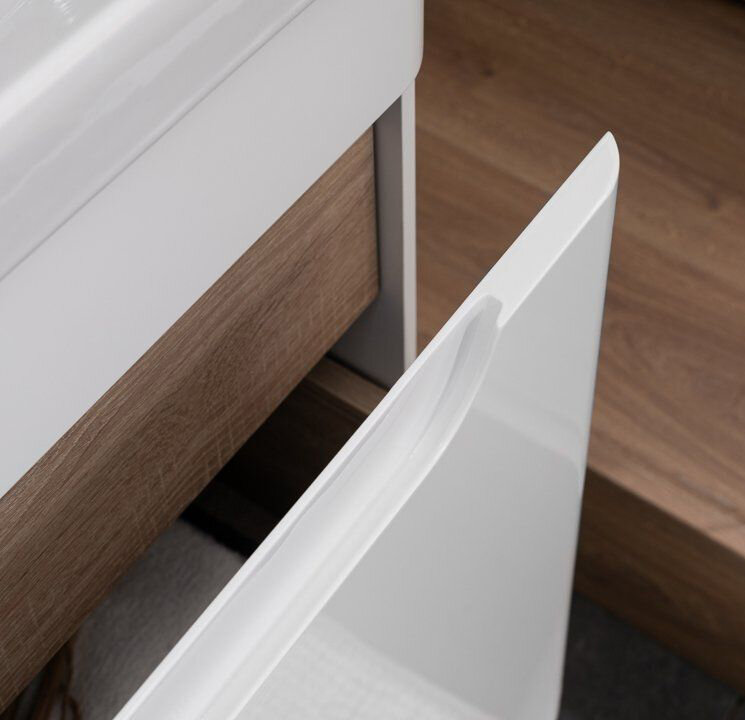 Комплект мебели для ванной Aquanet София 105 белого цвета состоит из изделий, где все детали продуманы до мелочей. Простая форма прямоугольника - в основе подвесных моделей, элегантно закругленные углы - для эстетичности и в целях безопасности, керамическая раковина, составляющая внешне единое целое с тумбой, многокомпонентная зона хранения, которая, несомненно, порадует рачительных хозяев. Для исполнения корпуса изделия использован влагостойкий ЛДСП, выкрашенный белой краской, фасады - из МДФ, внутренние ящики - ВЛДСП в цвете дуб сонома. Глянцевые поверхности выглядят безупречно. Конструкция внутреннего устройства тумбы шириной 105 см представляет собой большой выдвижной ящик, внутри которого предусмотрен еще один, небольшой, с тремя отделениями для размещения различных мелочей. Интегрированная ручка удобна в использовании, при этом выглядит элегантно и лаконично Комплект тумбе составляет зеркало такой же ширины из коллекции мебели для ванной комнаты производства Aquanet под названием «Орлеан». Материалы, используемые для изготовления этих изделий, идентичны, поэтому они чудесно смотрятся вместе.