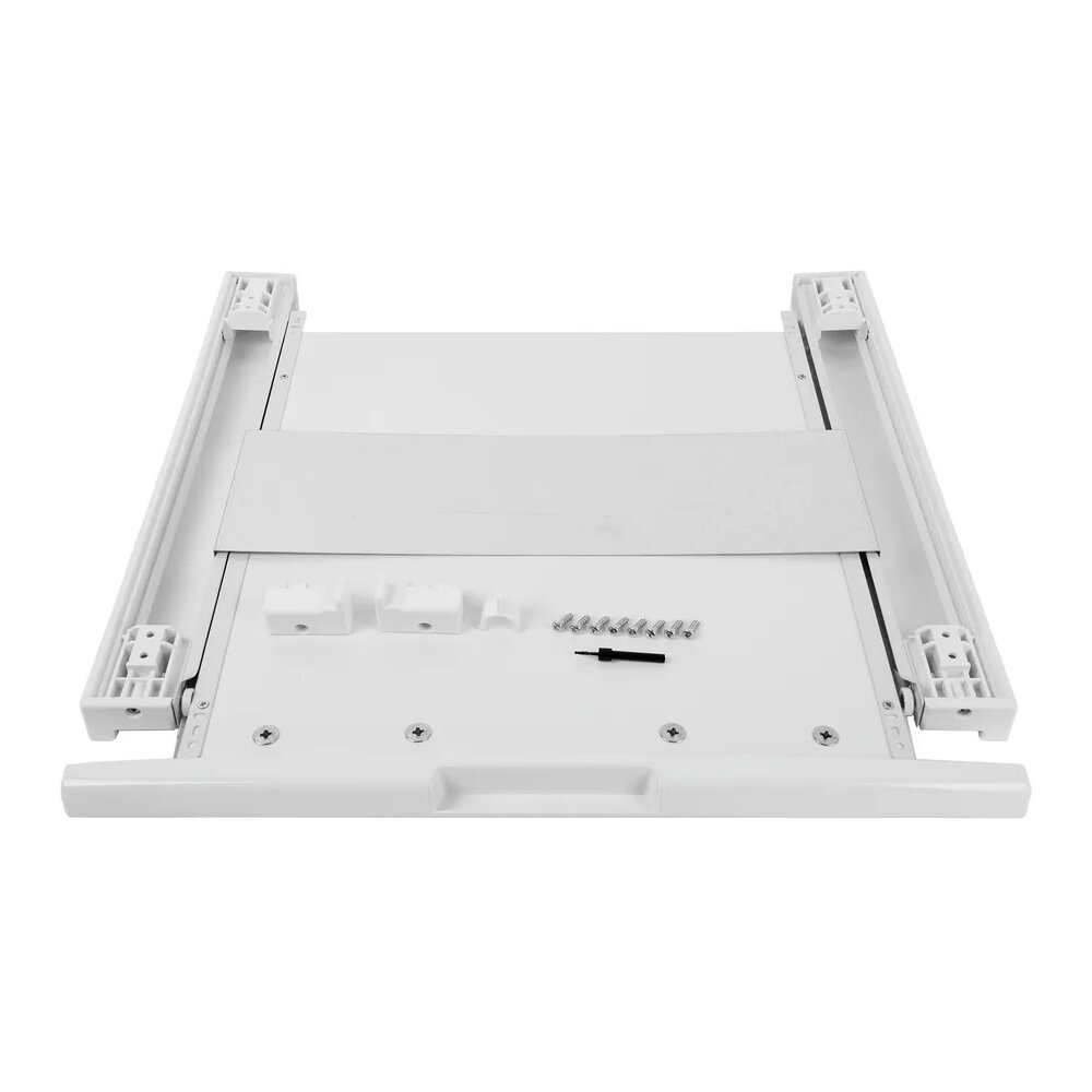 Соединительный элемент с выдвижной полочкой для установки сушильного автомата на стиральную машину.