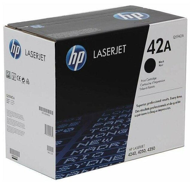 Оригинальный картридж HP Q5942A.Для принтеров HP LaserJet 4250, 4350. Картридж HP Q5942A поддерживает высокое качество готовых отпечатков и гарантирует превосходную точность печати. Порошковый материал, который находится внутри, не слеживается со временем, поэтому четкость и насыщенность изображения не снизятся, даже если принтер долго простоит без дела. С его помощью можно создавать изображения высокого разрешения, с тонкими линиями и деталями.