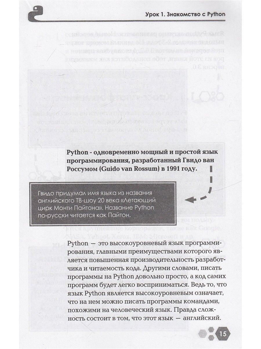 Приобрел я данную книгу с целью получить начальные знания по программированию, на языке python. Прежние мои знания сводились к тому, что я думал: программирование - это достаточно сложно.