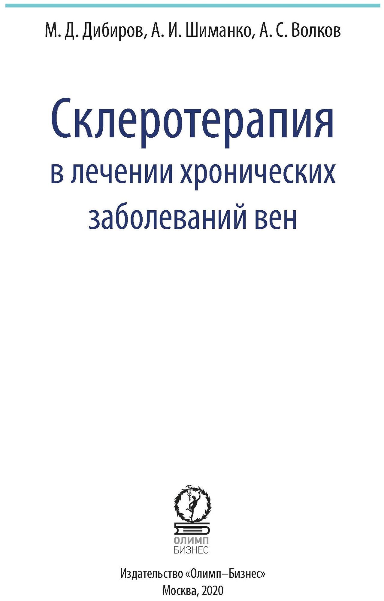 Склеротерапия в лечении хронических заболеваний вен (Дибиров Магомед Дибирович; Волков Алексей Станиславович; Шиманко Александр Ильич); Олимп-Бизнес, 2019