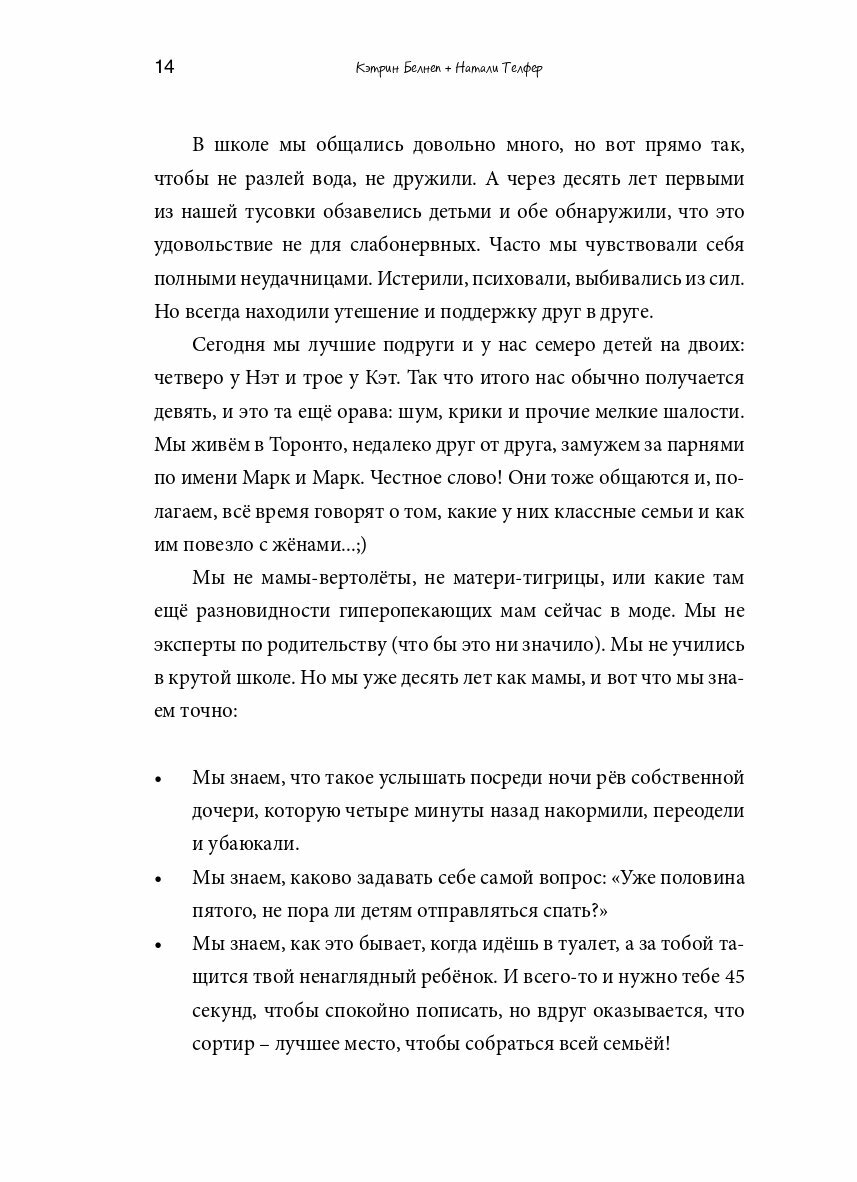 Вас точно ставили в тупик эти и еще сотни вопросов, если у вас есть (или только планируются) дети. Честно и весело, с самоиронией и без лукавства острые углы материнства обходят две подружки, Кэт и Нэт. У них на двоих семеро детей и их опыту можно доверять. Сотни ситуаций, смешных, глупых, нервных и нелепых - найдем выход месте!