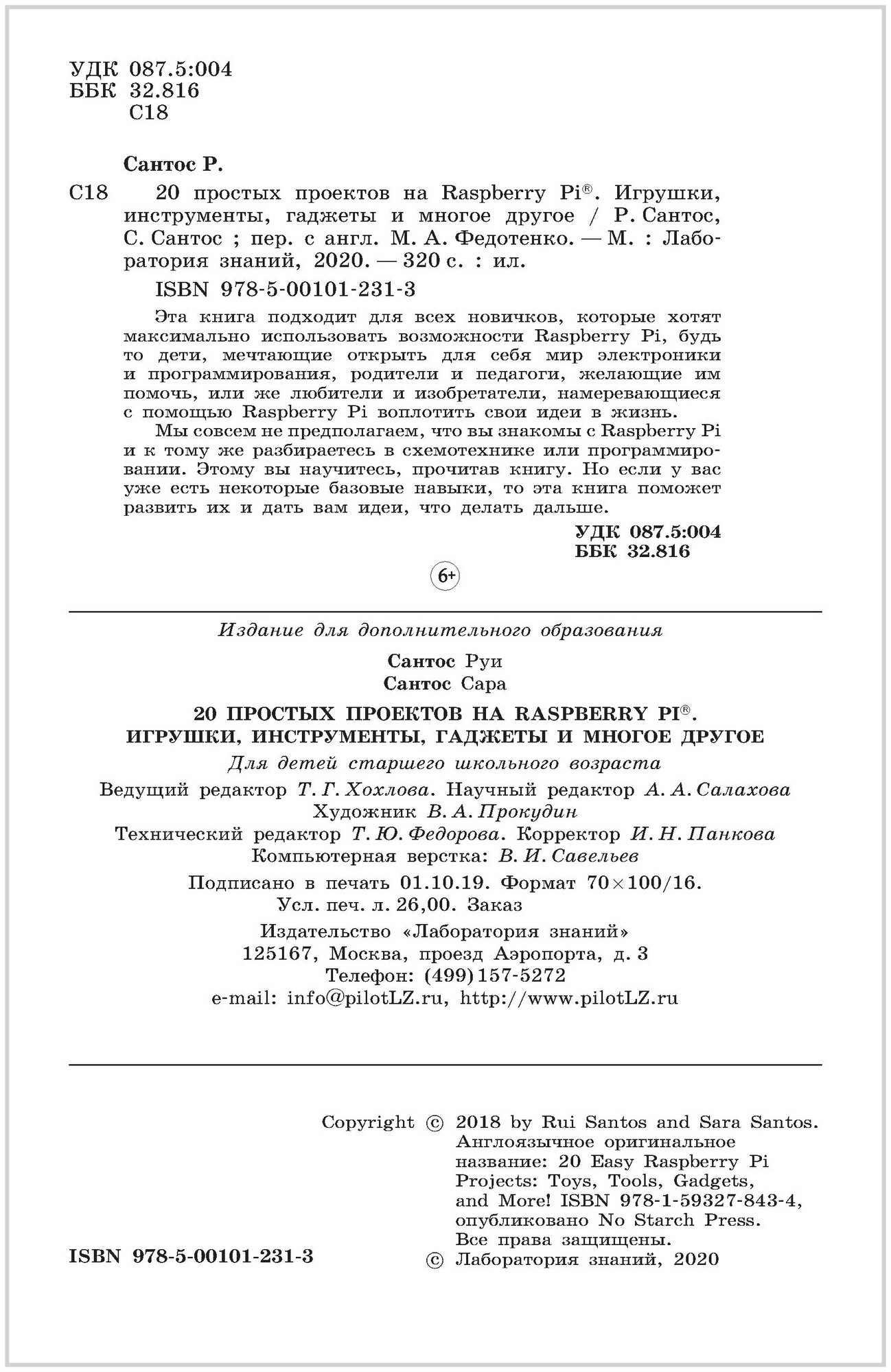 20 простых проектов на Raspberry Pi. Игрушки инструменты гаджеты и многое другое (Сантос Р., Сантос С.); Лаборатория знаний, 2020