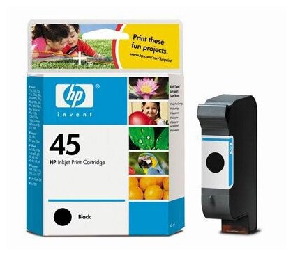 Картридж для принтера и МФУ HP 45 (51645AE) Large Inkjet Print Cartridge BlackЧерный струйный картридж HP 45 обеспечивает разрешение 600 x 600 т/д и использует технологию пигментных чернил, которая гарантирует высочайшее качество печати на принтерах HP Deskjet, Photosmart, Designjet и Officejet, особенно с использованием бумаги и пленок HP.Идеальное решение для деловых или домашних пользователей, которым необходима удобная мобильная система печати Оптимальное качество и высокая надежность Используется с принтерами HP Deskjet Portable, HP Deskjet 310, 320, 340 и HP Deskwriter 310, 320 и 340Чернила высокой плотности на пигментной основе обеспечивают чёткую чёрно-белую печать текста и графики. Корпус картриджа снабжён удобным индикатором уровня чернил. Встроенная печатающая головка и запас чернил. Простота установки и выемки картриджа обеспечивает быстроту и лёгкость замены.Используется с различными моделями HP Deskjet. Предназначен для принтера HP Designjet 700. Предназначен для струйного фотопринтера HP Photosmart 1000 для печати с фотокамер. Использовать с принтерами HP Officejet Pro 1150c, 1170c, 1175c.