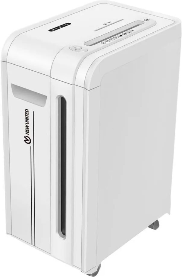 NEW UNITED справится с переработкой бумаги вместе со скобами и скрепками, порежет на мелкие кусочки пластиковые карты и оптические диски.