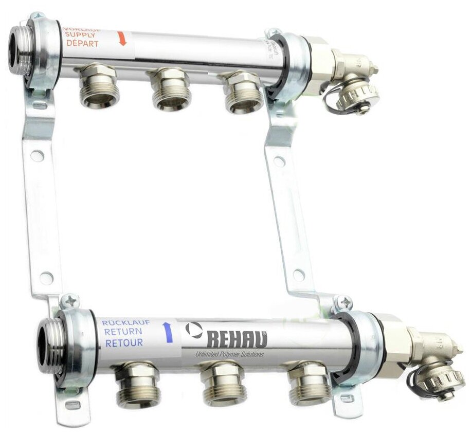Сервис сравнения цен СкидкаГИД предлагает сравнить цены на товар «HLV 11102141001 Коллекторная группа (1" НР 9 x 3/4" НР нержавеющая сталь) REHAU»