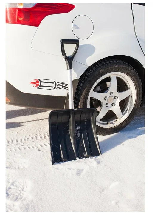 «Снежинка» с укороченным черенком. Лопата снеговая автомобильная. Материал: пластик, металлическая кромка, алюминиевый черенок.