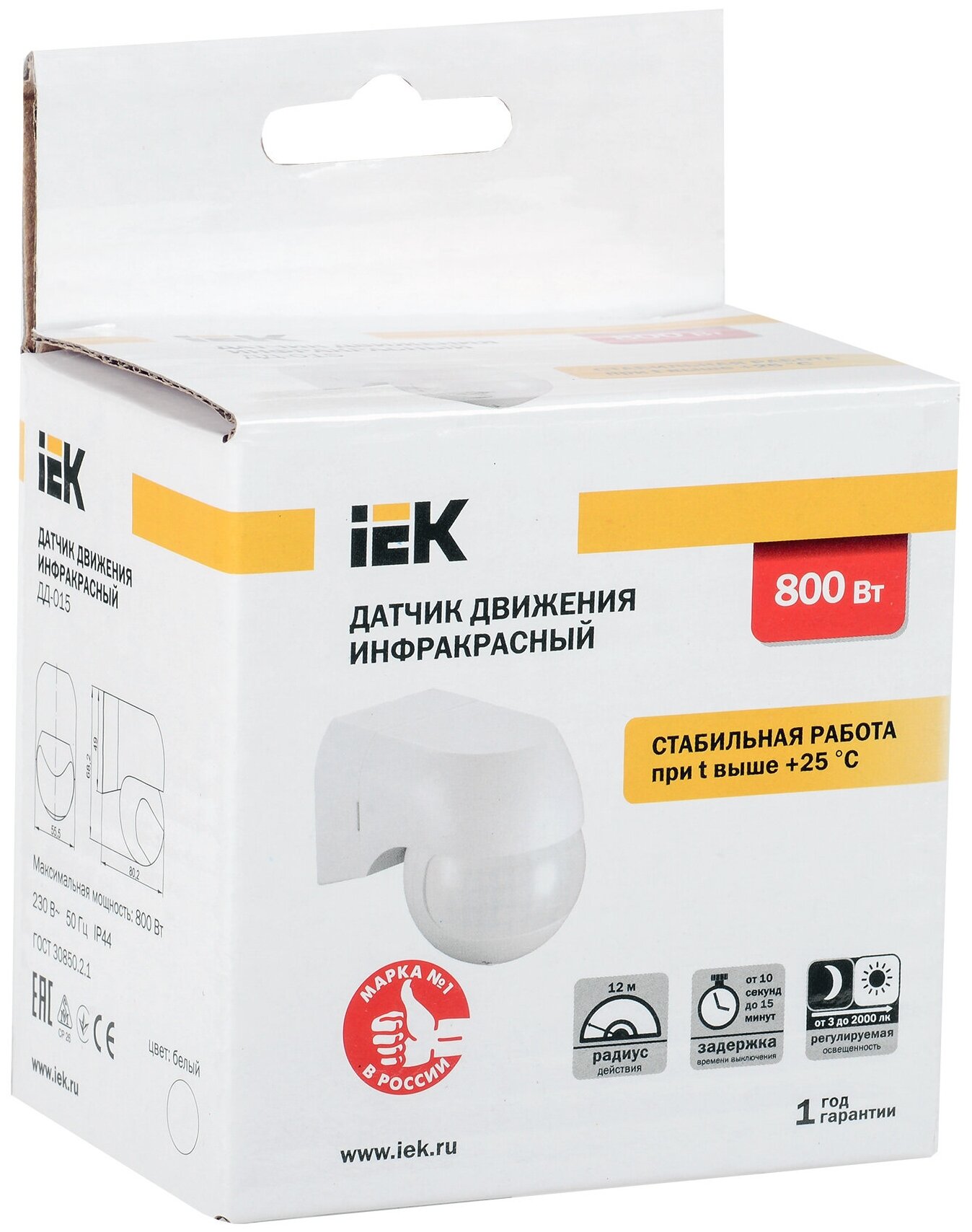 LDD10-015-800-001 Датчик движения ДД 015 (800 Вт 180 ° дальность 12 м в сборе настенный IP44 белый) IEK