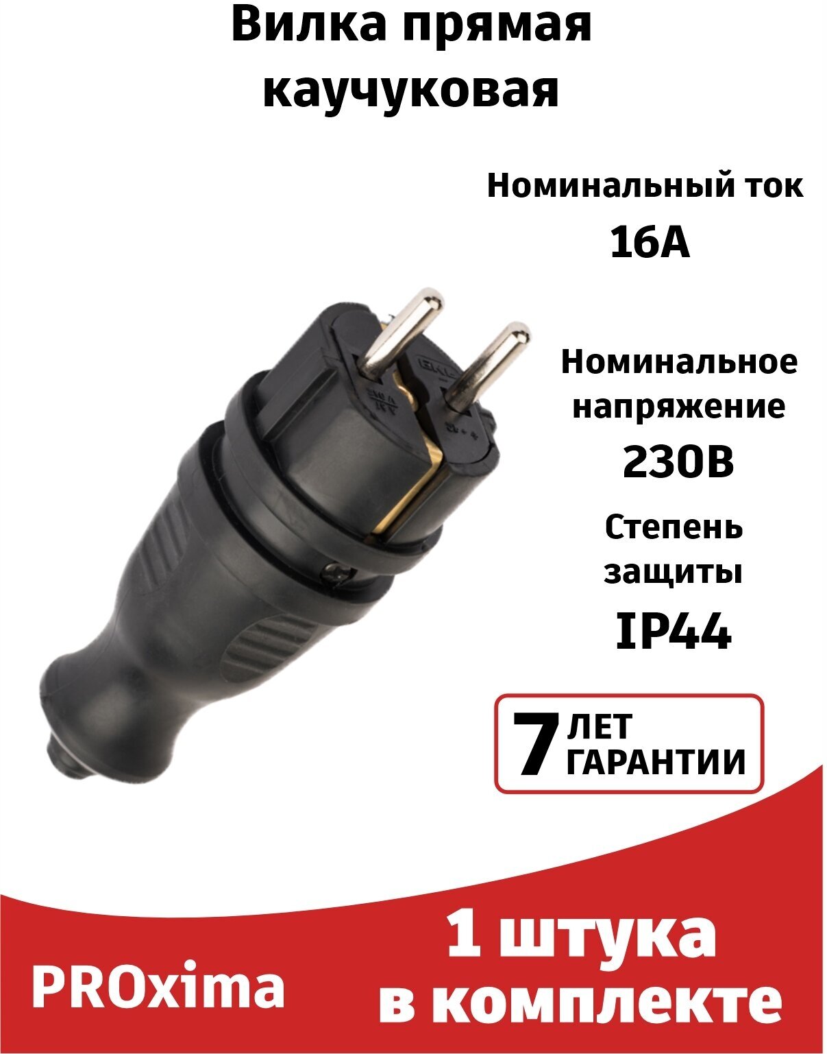 Вилка прямая каучуковая 230В 2P+PE 16A IP44 PRO EKF (RPS-011-16-230-44-r)