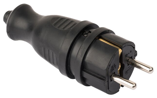 Вилка прямая RPS-011 Proxima предназначена для подключения мощных электроприборов с током до 16А к сети 230В / 50Гц. Имеет степень защиты IP44, что позволяет использовать её в уличных условиях под навесом. Вилка имеет усиленную контактную группу, корпус из морозостойкого материала (-40°С.+55°С) и удобную продуманную конструкцию. Все это позволяет использовать RPS-011 на объектах повышенной ответственности и в особо тяжелых условиях. Соответствует стандарту Shuko. Применяется совместно с колодками и переносными розетками серии RPS или другими розетками, соответствующими стандарту Schuko. Благодаря удобной и надежной конструкции разъемы EKF Proxima можно использовать на объектах повышенной ответственности и в особо тяжелых условиях. Преимущества: Корпус из высококачественного ТЭП, работает при температурах от -40 до +85°С; защитные крышки обеспечивают защиту IP44; Усиленная латунная группа с дополнительной негорючей изоляцией; дополнительная скоба для фиксации провода; удобная продуманная конструкция. Каучуковые силовые разъемы EKF BASIC обладают высокими электроизоляционными свойствами, износостойкостью, ударопрочностью, а также устойчивостью температурным колебаниям. Корпуса разъемов изготовлены из термоэластопласта, что значительно повышает их эксплуатационные свойства и износостойкость, а также делает устойчивыми к химическому воздействию. Разъемы идеально подходят для подключения электрооборудования, электроинструмента, автомобильных моек, промышленного оборудования и т. д. Основные сферы применения силовых разъемов – строительные и производственные площадки, машиностроение, электроснабжение бытовок и киосков, а также использование на даче или приусадебном участке Корпус устойчив к ударам, стойко переносит мороз, не деформируется и не разрушается; защитные крышки предохраняют изделия от попадания влаги; Рифленая поверхность не позволяет изделию выскальзывать из рук; надежная латунная контактная группа; фиксация провода внутри розеточного блока дополнительной скобой. Применяется так же: Подключение потребителей на производстве; Организация электропитания мобильных объектов; Подключение потребителей электроэнергии на строительных площадках; Подключение бытового электроинструмента на садовых и дачных участках.