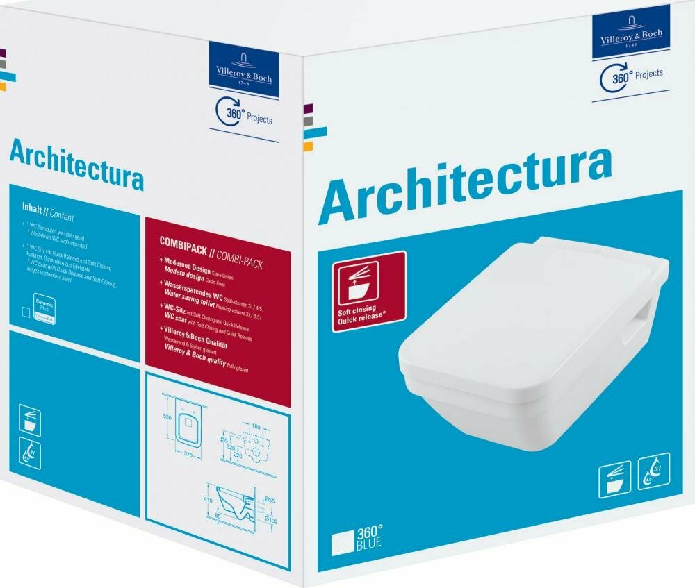 - Обзор унитаз подвесной Villeroy&Boch Architecture NEW DirectFlush 4694hr01