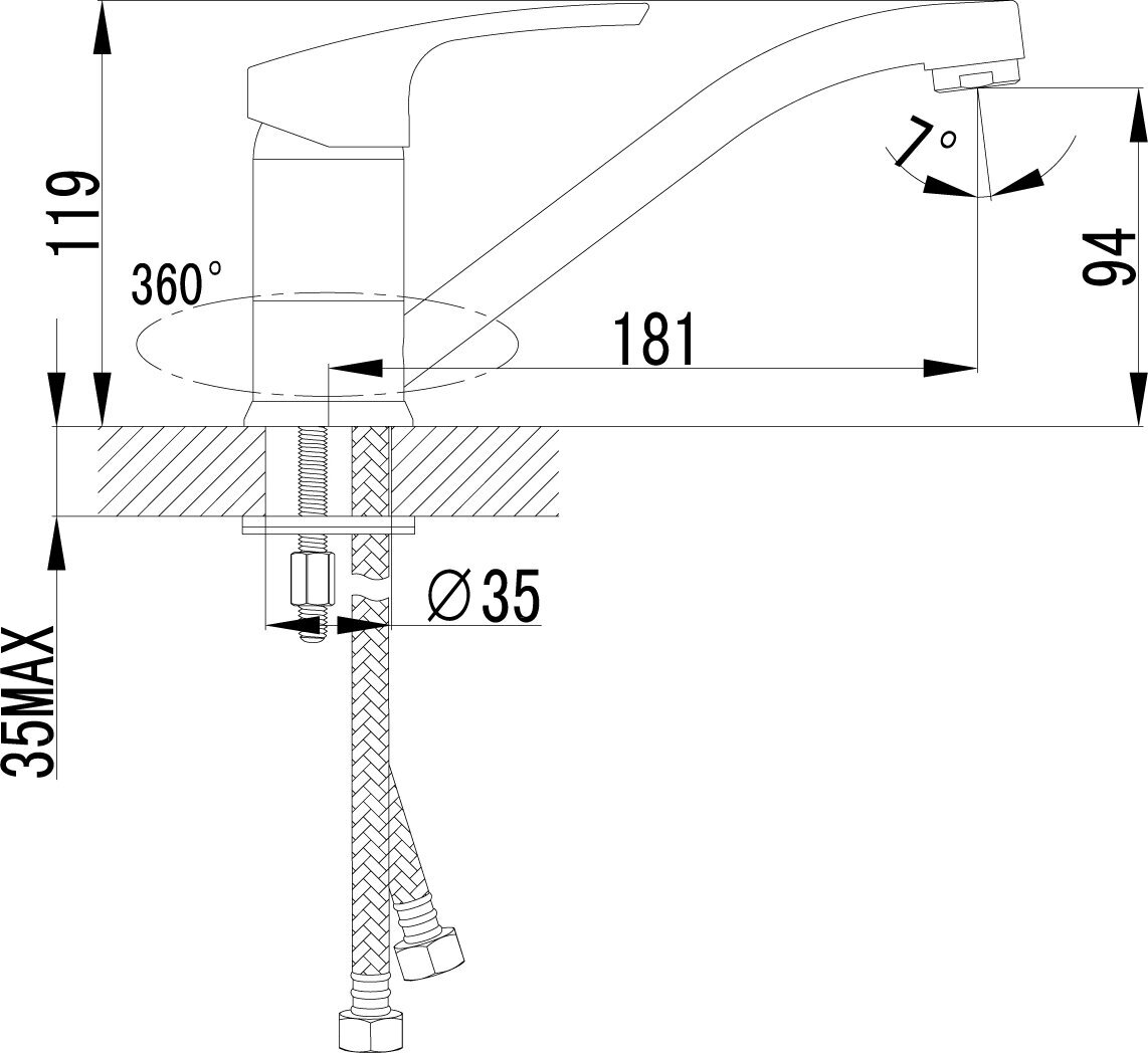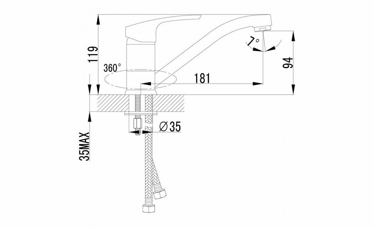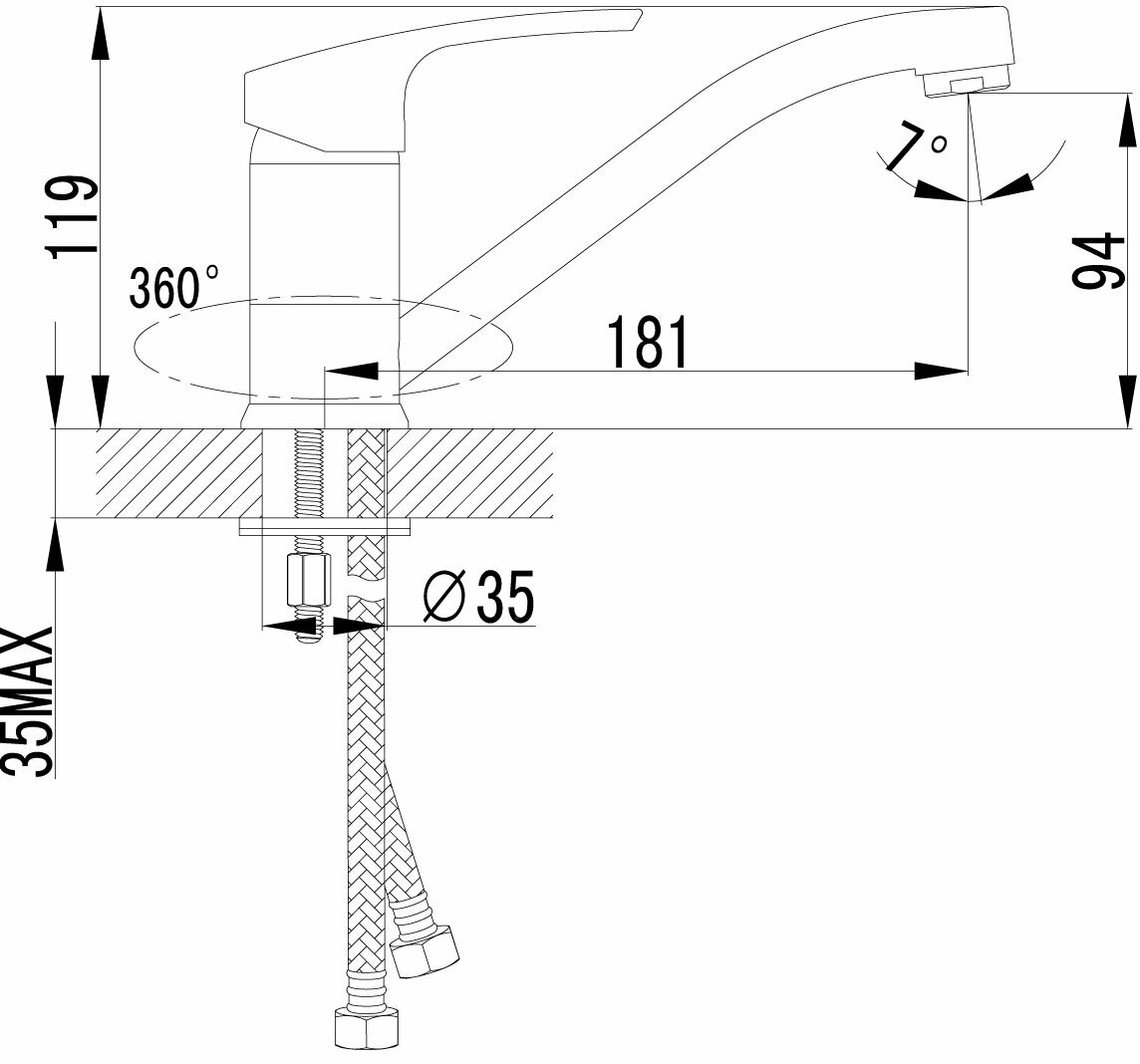 | Диаметр отверстия в раковине | 35 |