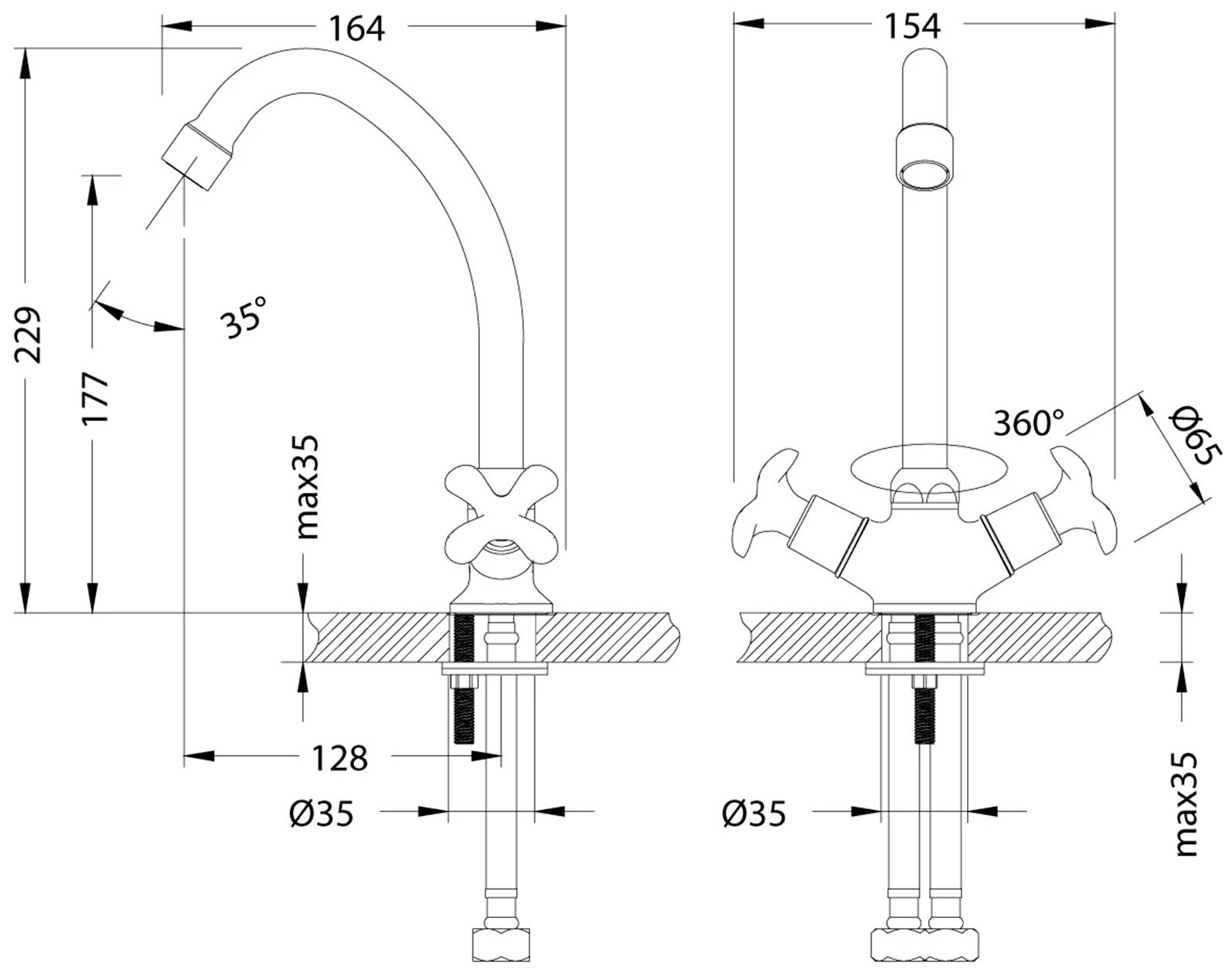 Универсальный дизайн смесителя дополнит большинство кухонных интерьеров.