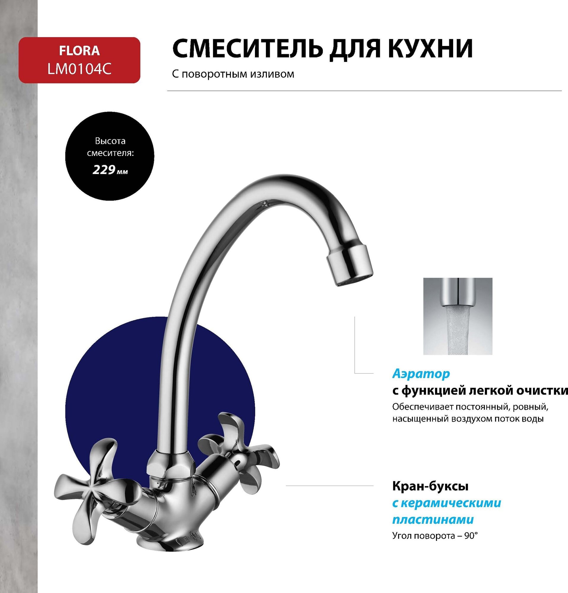 Смеситель для кухонной мойки Lemark с поворотным изливом.