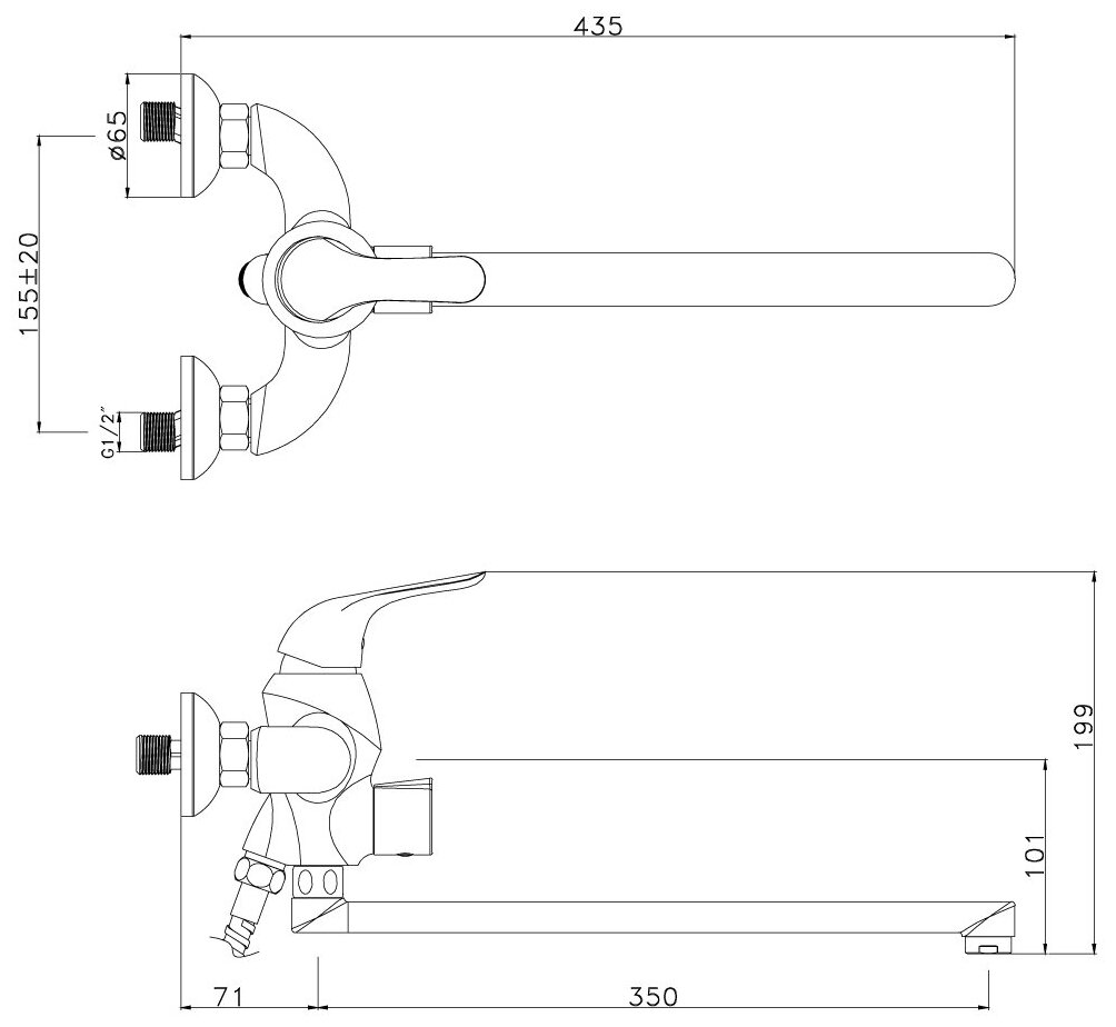 | ВКоробке | Смеситель - 1 шт. Душевая лейка - 1 шт. Душевой шланг - 1 шт. Настенный держатель - 1 шт. Эксцентрик - 2 шт. Инструкция - 1 шт. |
