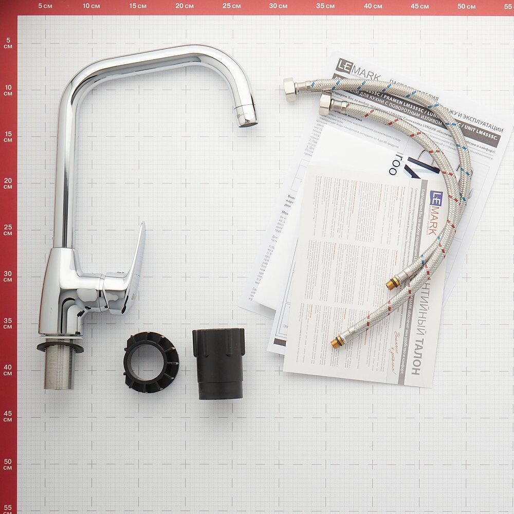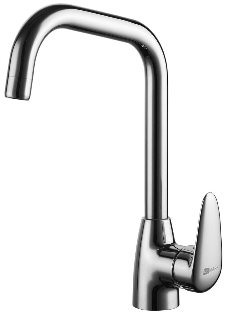 Смеситель для кухни с поворотным изливом Lemark . Аэратор Neoperl-Cascade, керамический картридж 35 мм, гибкая подводка 1/2 40 см, металлическая рукоятка.