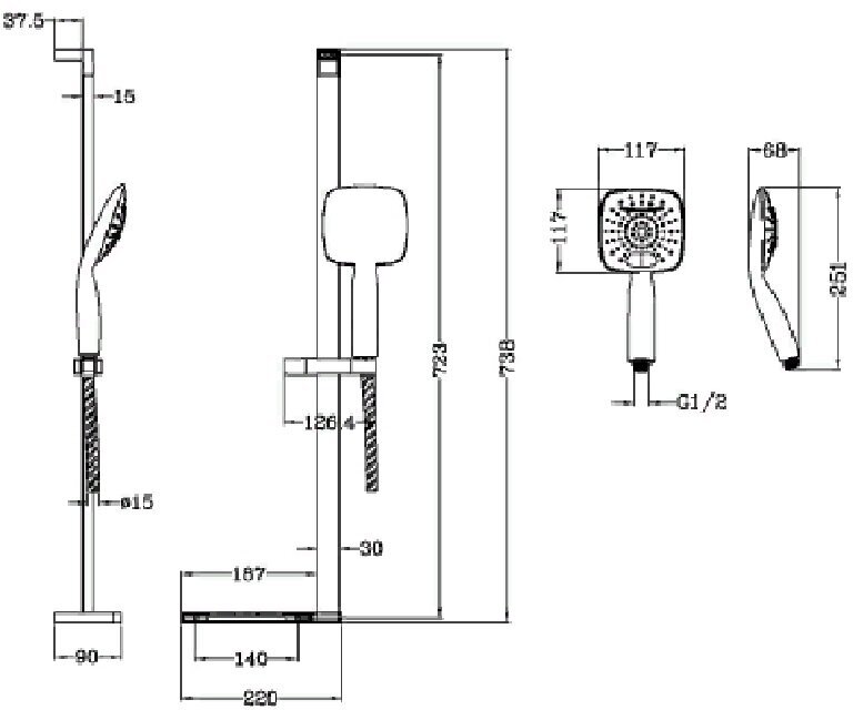 | Высота стойки для душа | 738 мм |