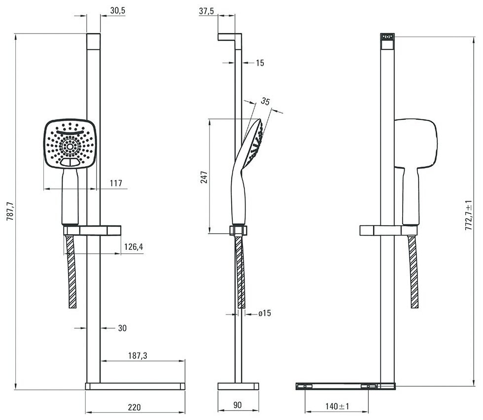 | ВКоробке | Лейка - 1 шт. Шланг - 1 шт. Полочка - 1 шт. Душевая штанга - 1 шт. Инструкция - 1 шт. |