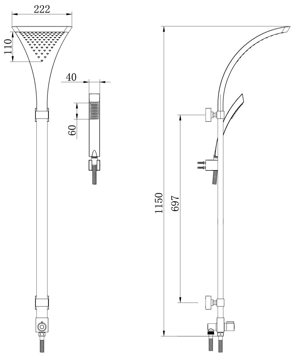| Комплект поставки | верхний душ, душевая стойка, душевая лейка, настенное крепление, шланг для душа 1,5м |