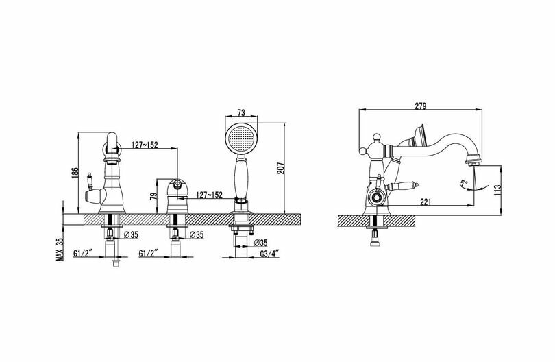 | Тип установки | на борт ванны |