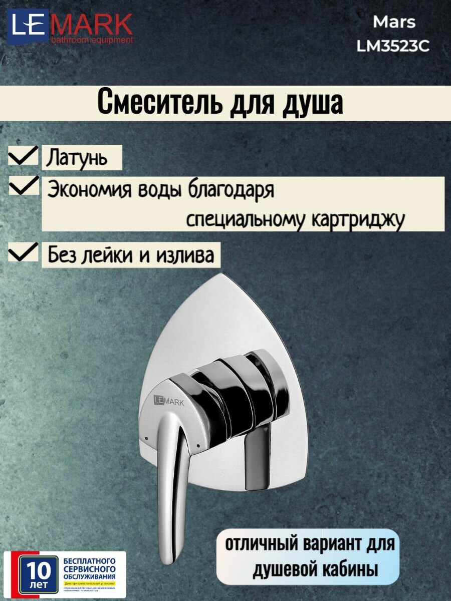 Встраиваемый смеситель для душа Lemark , цвет Хром. Гармонично впишется в любой интерьер ванной комнаты в современном стиле своим стильным и эргономичным дизайном.