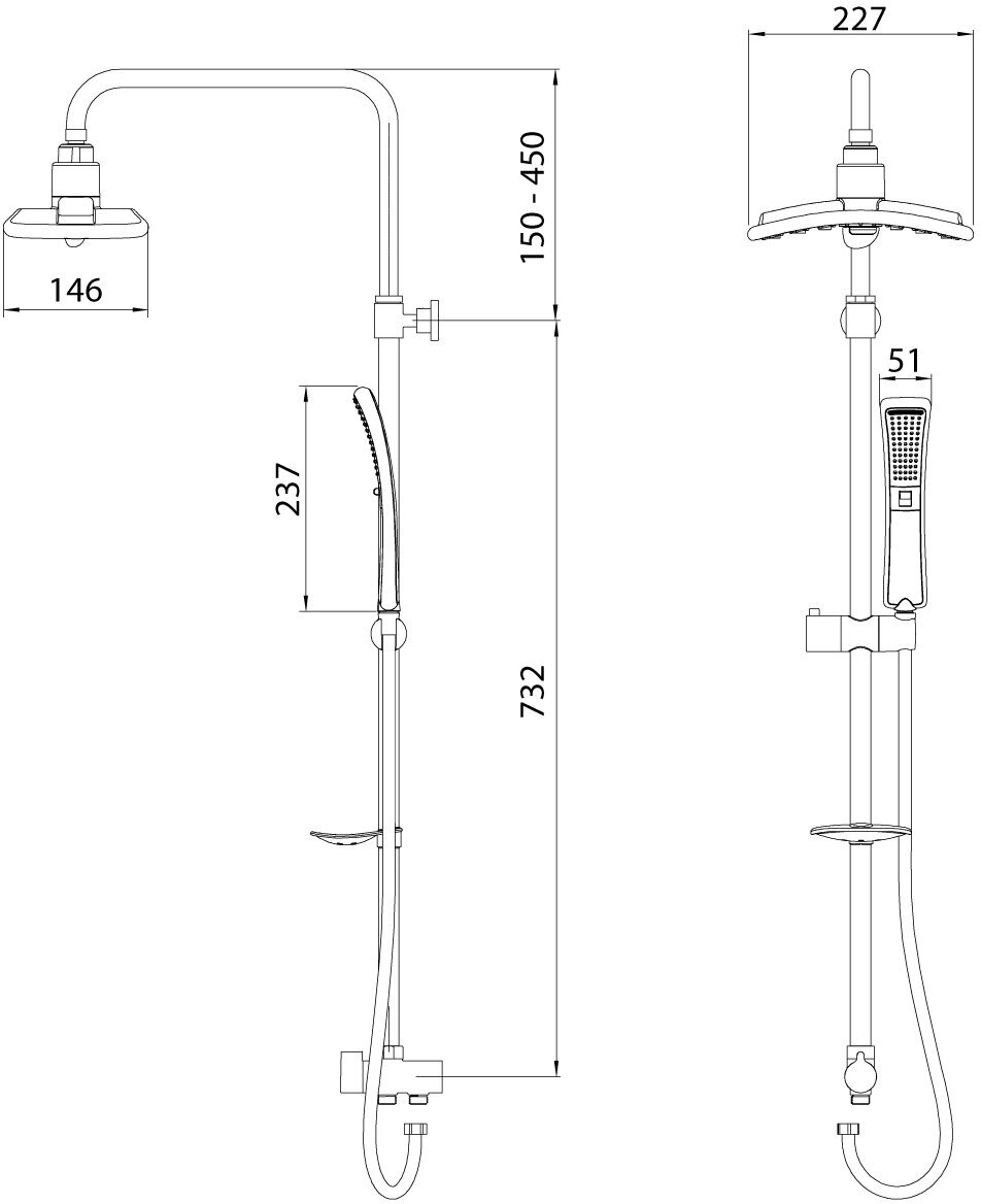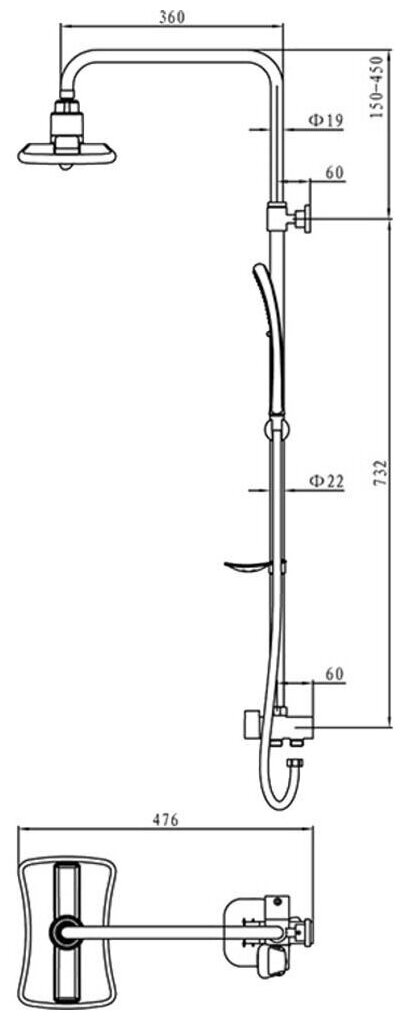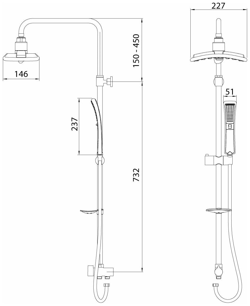 | Комплект поставки | верхний душ, душевая стойка, душевая лейка, настенное крепление, шланг для душа 1,5 м, мыльница |