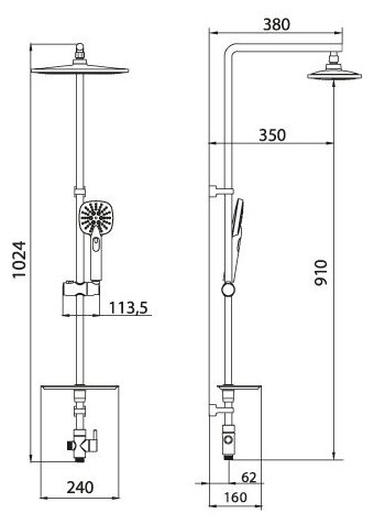 | Длина (вылет) излива | 360;360 |