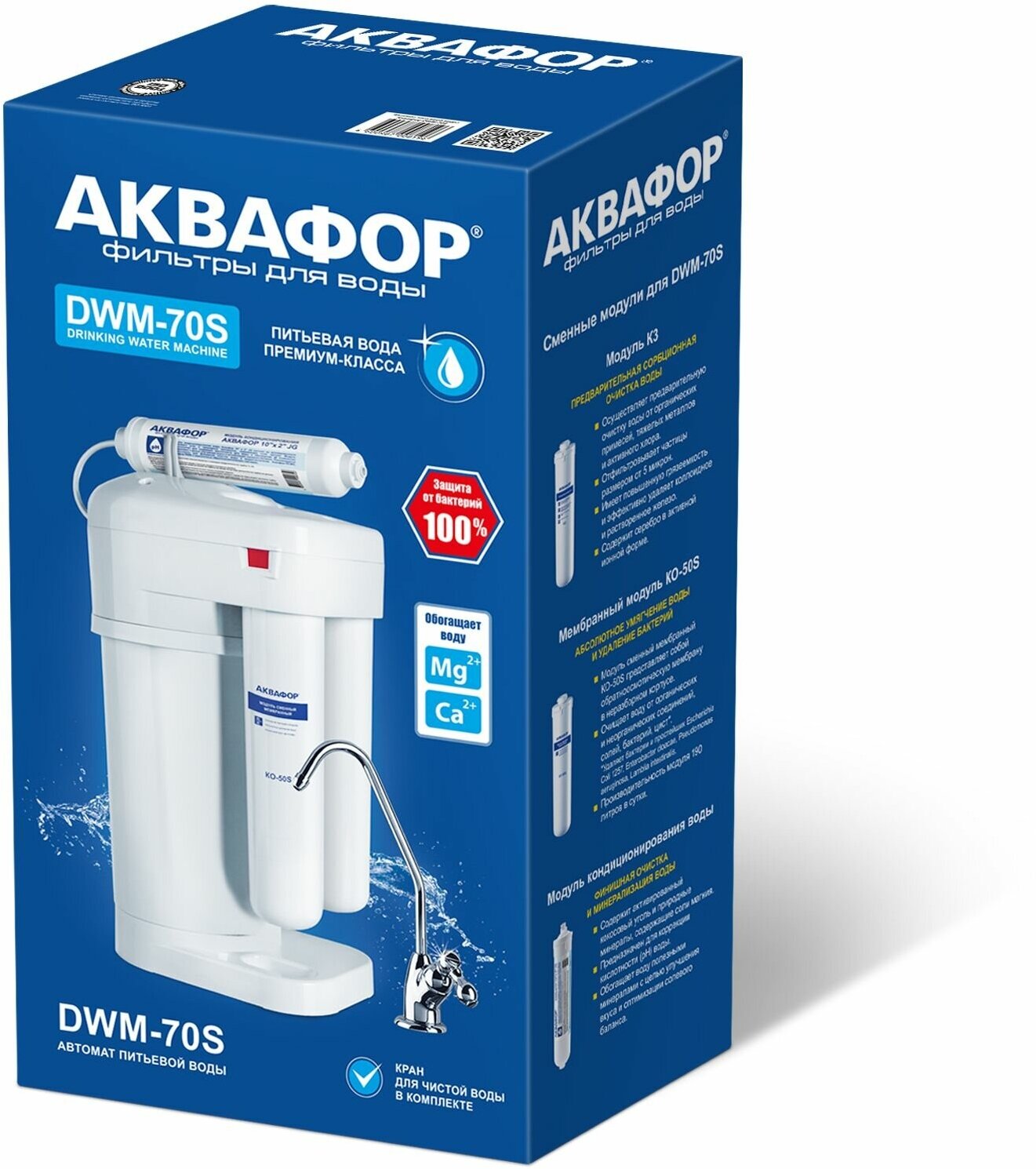 Высокоэффективный фильтр для удаления из проточной воды практически всех видов органических, механических и химических примесей Аквафор DWM 70 устранит все загрязняющие вещества даже при высоком их содержании в воде в исходном состоянии. Отдельный кран для вывода фильтрованной воды, поставляемый в комплекте, позволяет пользователю располагать отдельным источником чистой питьевой воды, тогда как к стандартному крану, установленному на мойку, может быть подведена вода санитарного назначения.