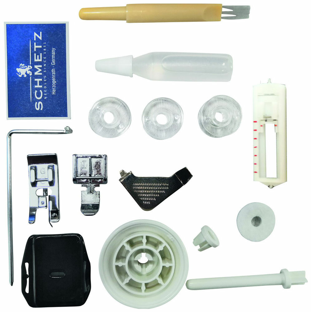 | Комплект поставки | педаль; руководство по эксплуатации; рамка для петли; иглы стандартные; шпульки; распарыватель; лапка универсальная; лапка для обметывания петель; лапка для вшивания молнии |