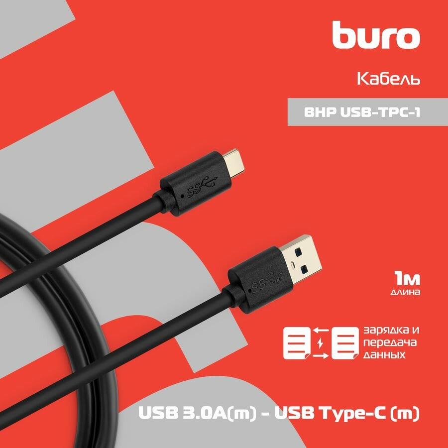 Кабель BURO USB 3.0 A(m) USB Type-C (m) 1м черный [bhp usb-tpc-1]