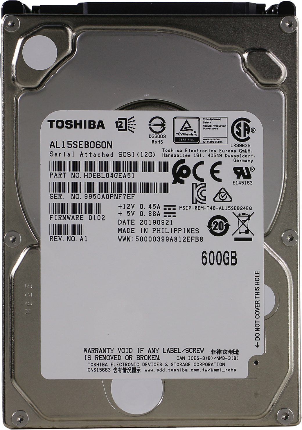 Жесткий диск TOSHIBA 600Гб HDD SAS 3.0 2.5" AL15SEB060N