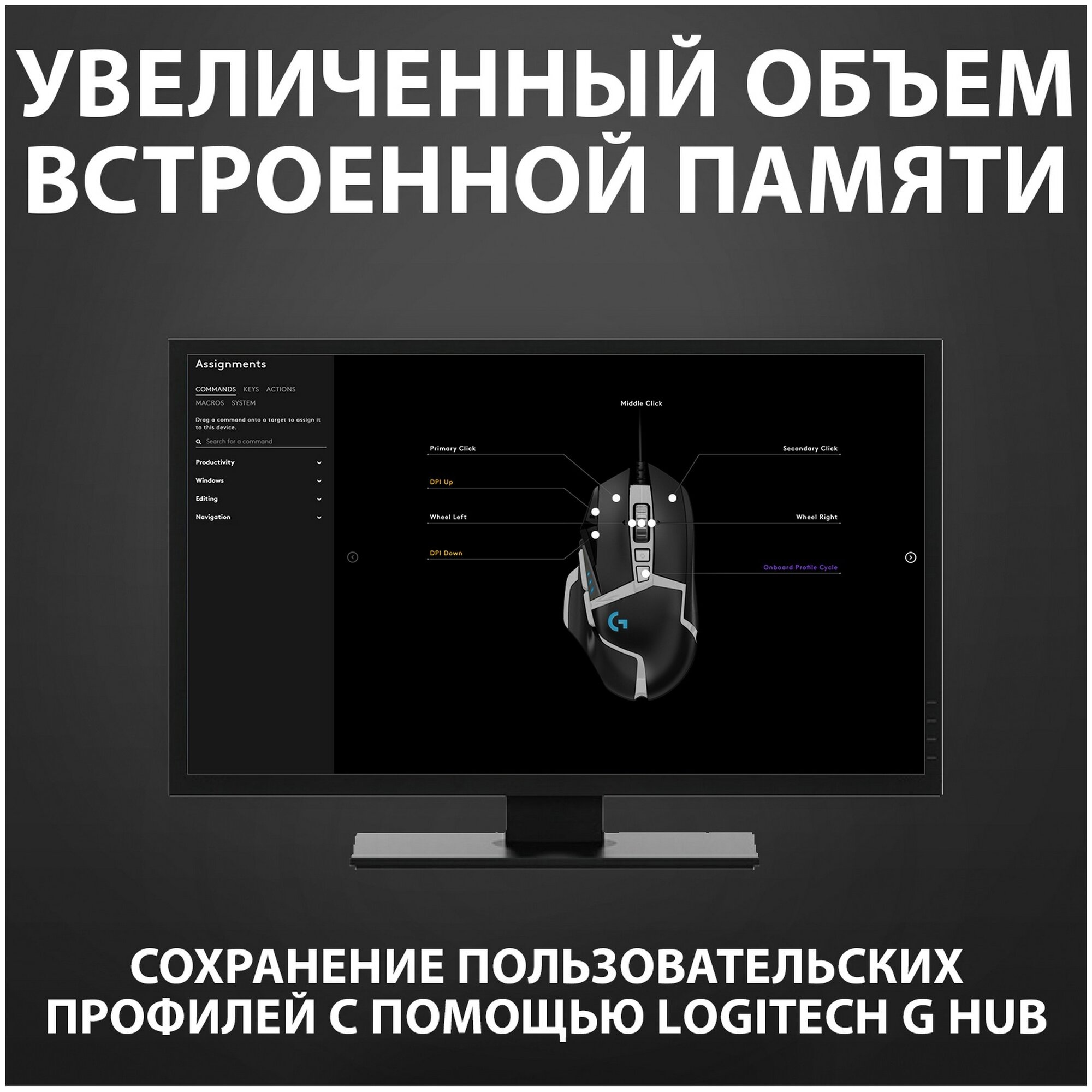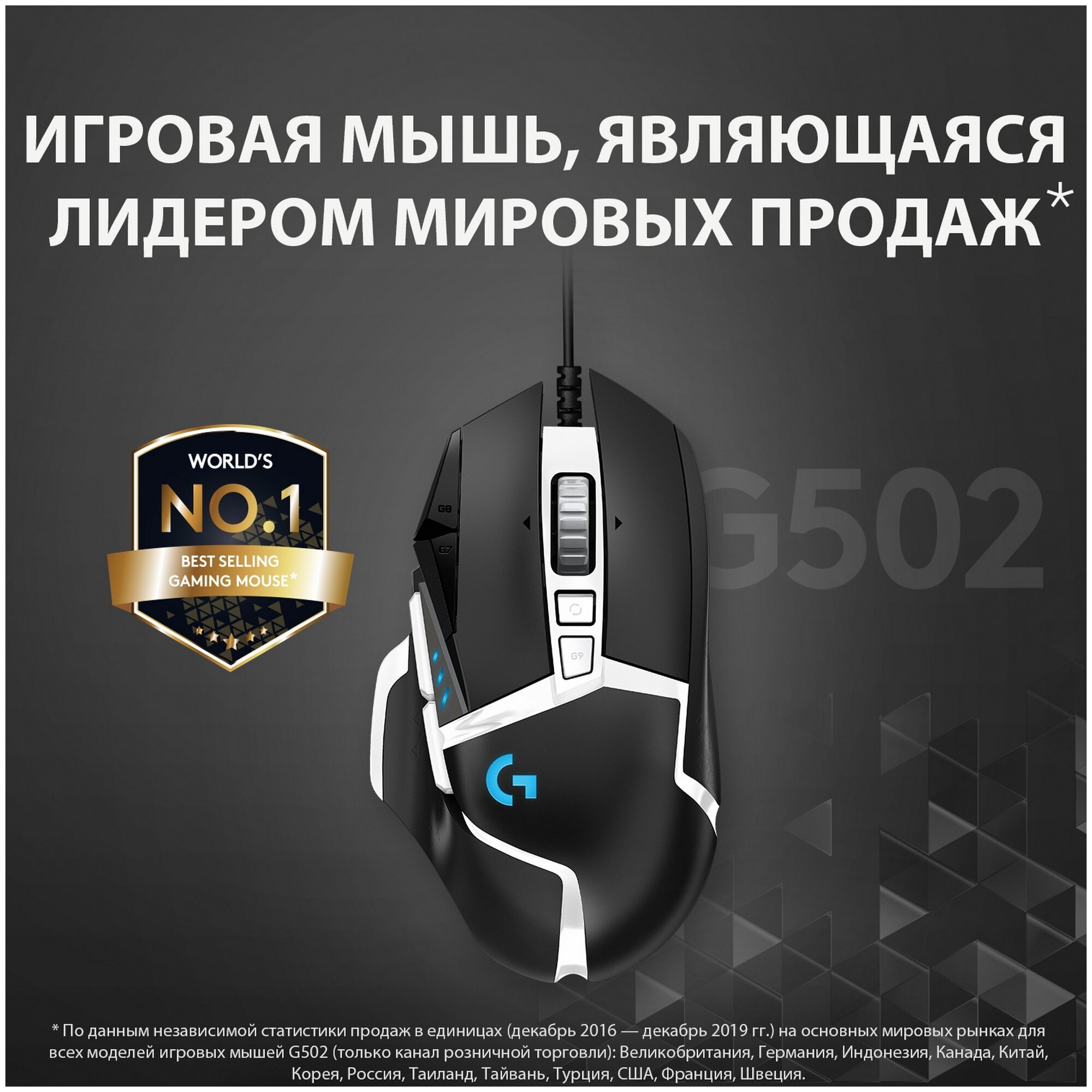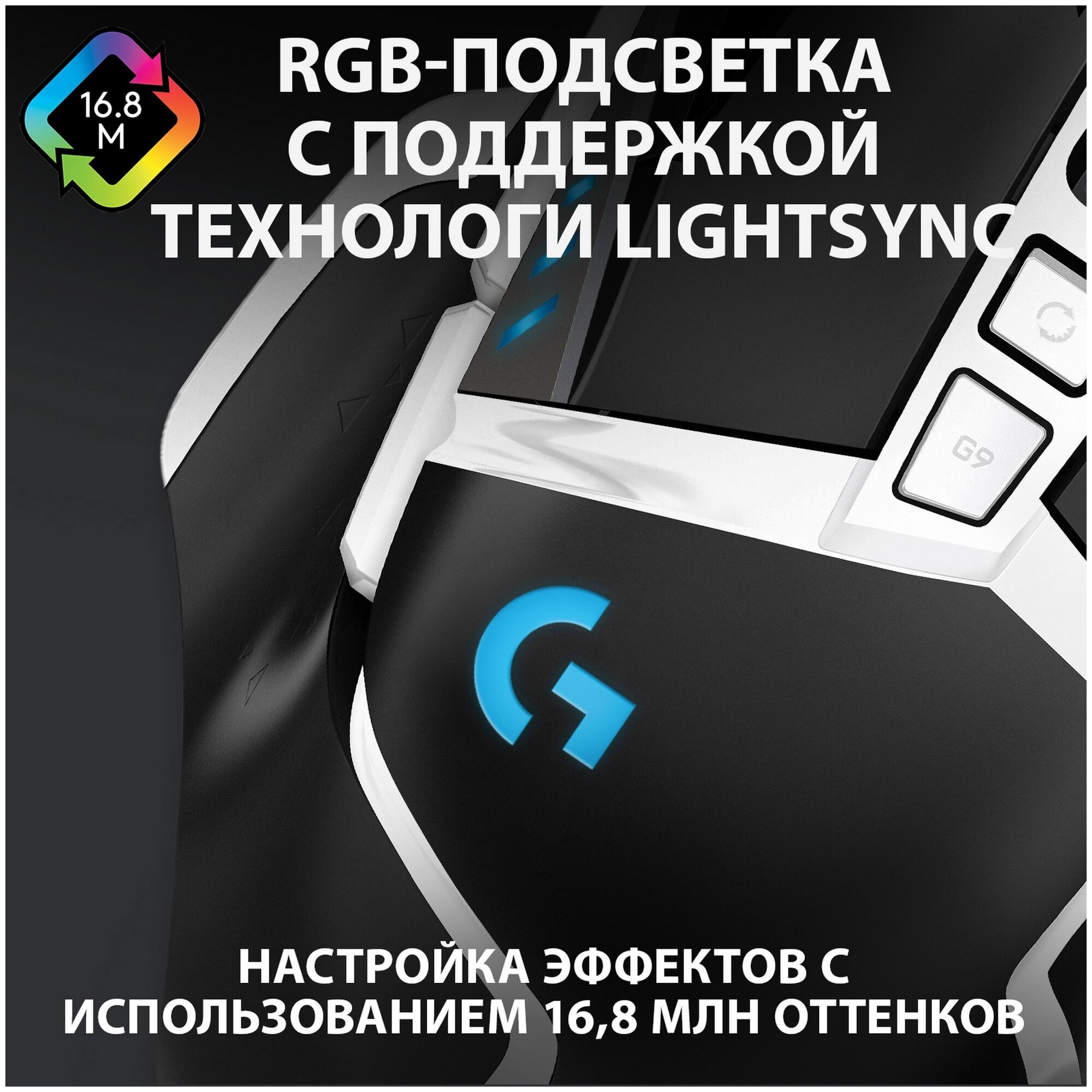 | Дополнительно | RGB-подсветка. В комплект поставки G502 HERO входят пять утяжелителей по 3,6 г, которые в различных комбинациях можно разместить спереди, сзади, слева, справа и по центру мыши. |