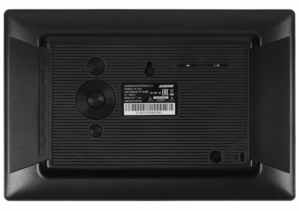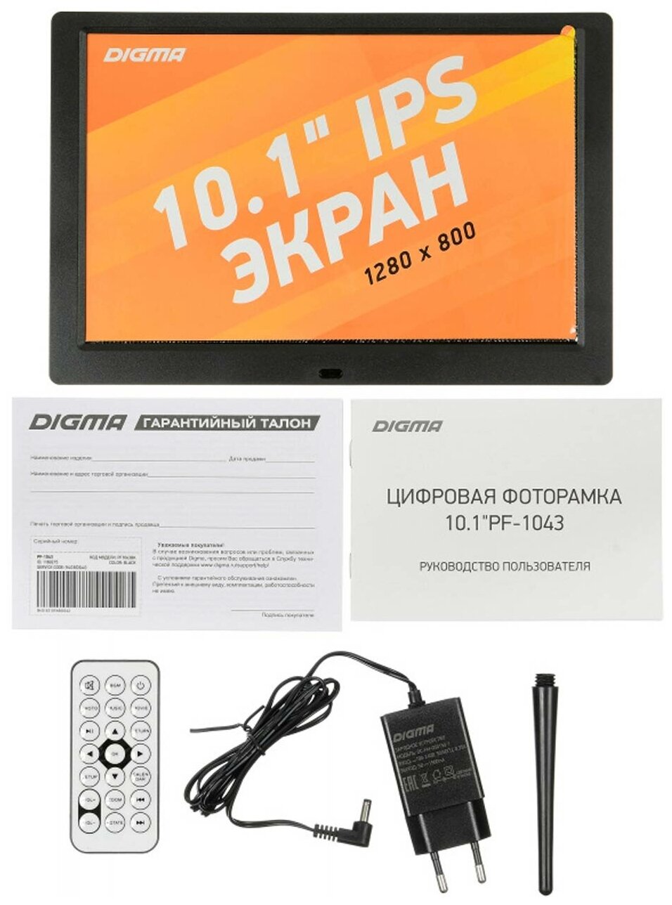Фоторамка Digma PF-1043 IPS черный, пластик, диагональ 10.1", 1280x800, ПДУ, Видео (PF1043BK)