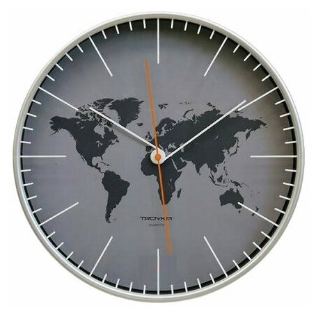 | Прочие особенности и свойства | Настенные кварцевые часы TROYKA 77777733 с изображением карты выполнены в классическом стиле. Часы имеют три стрелки:часовую, минутную и секундную. Циферблат защищен минеральным стеклом. |