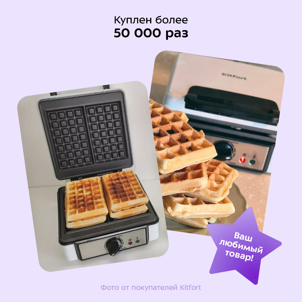 не понимаю чем отличаются вафельницы разных брендов, ценой только честно говоря, сколько сравнивали... А по качеству везде одно и то же. Я заказала у Китфорт, ну почти 2000 р. она мне вышла, качество вообще крутое, тяжелая, видно что не галимый пластмасс. Очень понравилось, что производитель приложил инструкция с рецептами, рецепты идеальные.