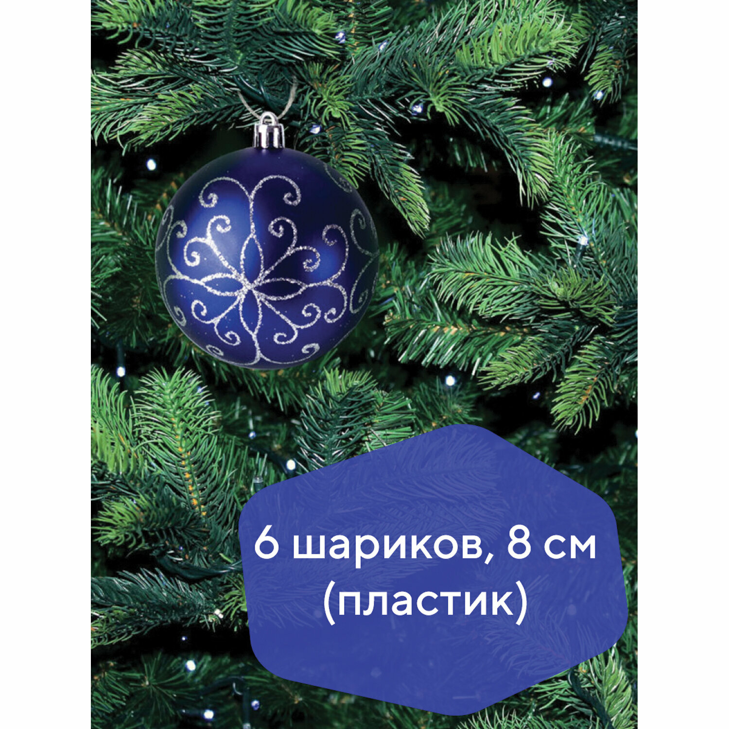 Шар на ель 590892 6 шт. синий Золотая сказка (размер: 8 см)