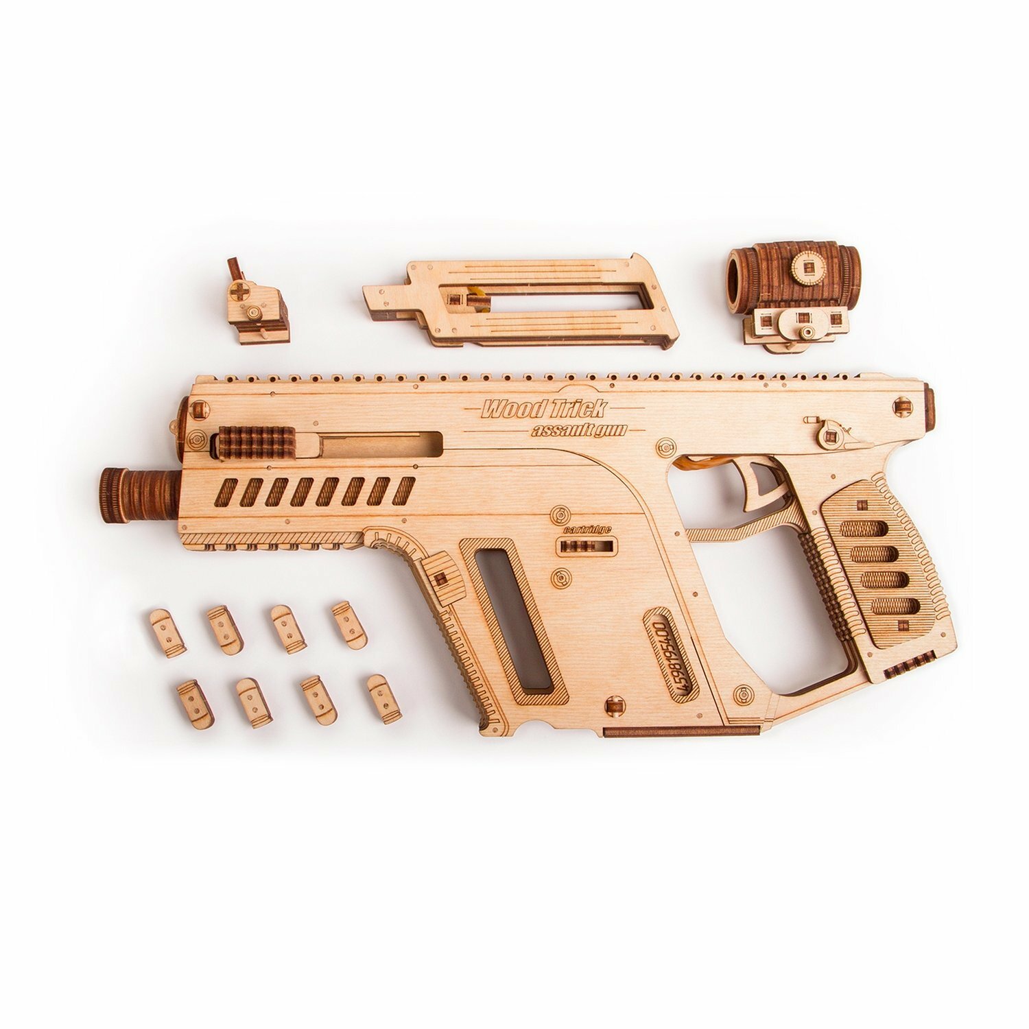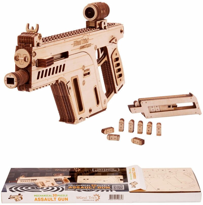 Сервис сравнения цен СкидкаГИД предлагает сравнить цены на товар «Сборная деревянная модель Wood Trick "Штурмовая винтовка" 158 деталей Механический 3D-пазл Штурмовая винтовка»