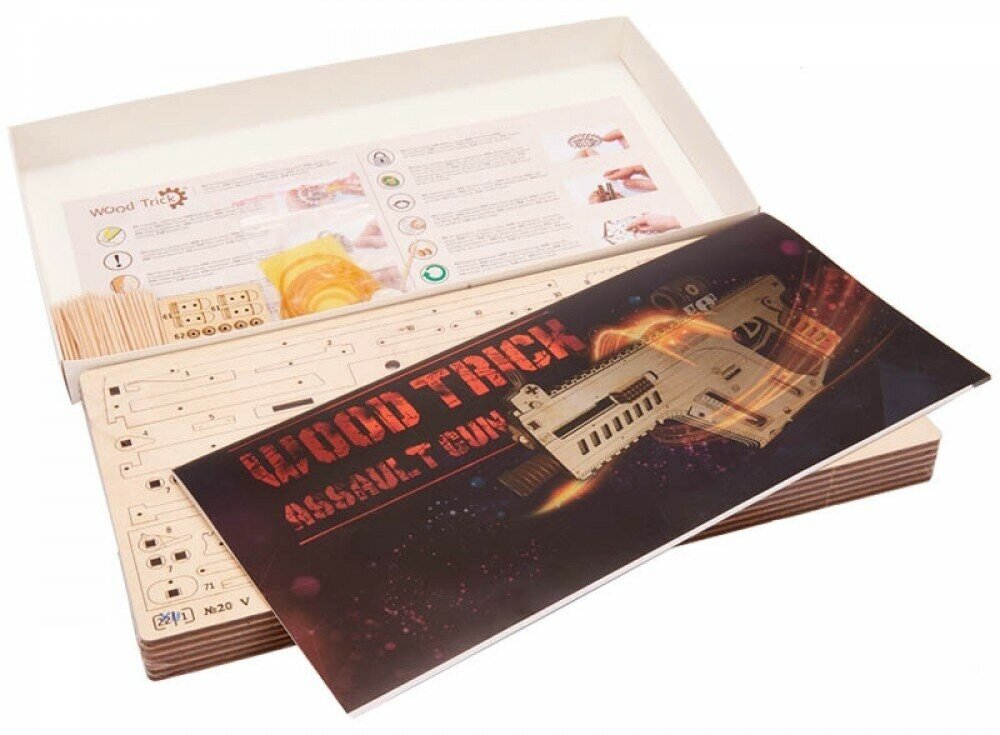 Штурмовая винтовка быстро заряжается и может без остановки стрелять, пока не опустеет обойма. Конструкторы Wood Trick помогают детям развивать фантазию не только во время игры, но и в процессе сборки. Ваш ребенок почувствует себя настоящим архитектором и проектировщиком. Легкая и понятная ребенку инструкция поможет ему собрать конструктор самостоятельно и несомненно обрести навыки моделирования.