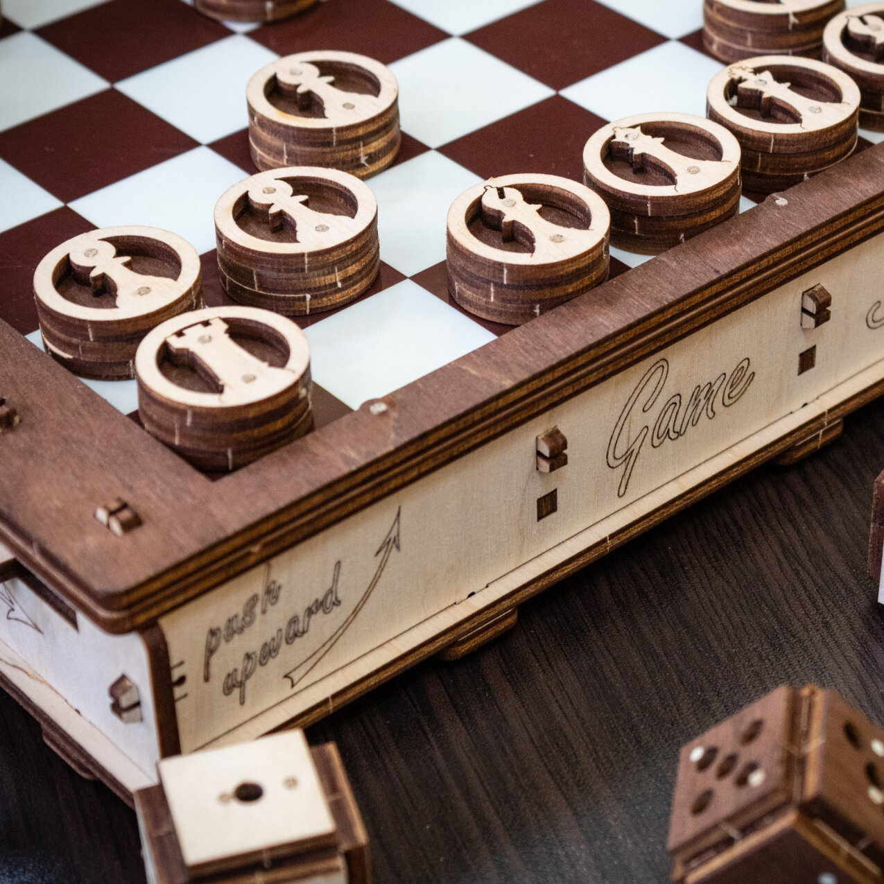 Все детали и игровое поле сделаны из березовой фанеры высшего сорта. Все детали отшлифованы и их приятно держать в руках.