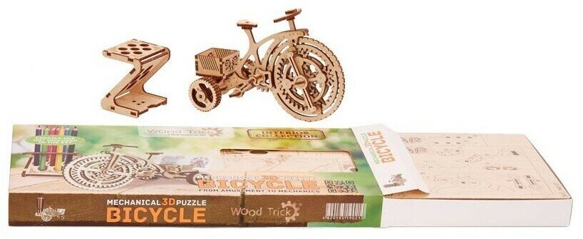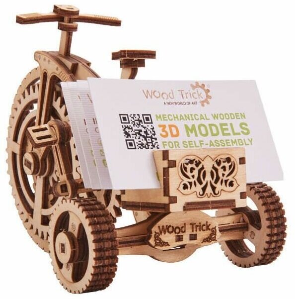 Сборная деревянная модель Wood Trick Велосипед-визитница 89 деталей Wood Trick Механический 3D-пазл Велосипед-визитница