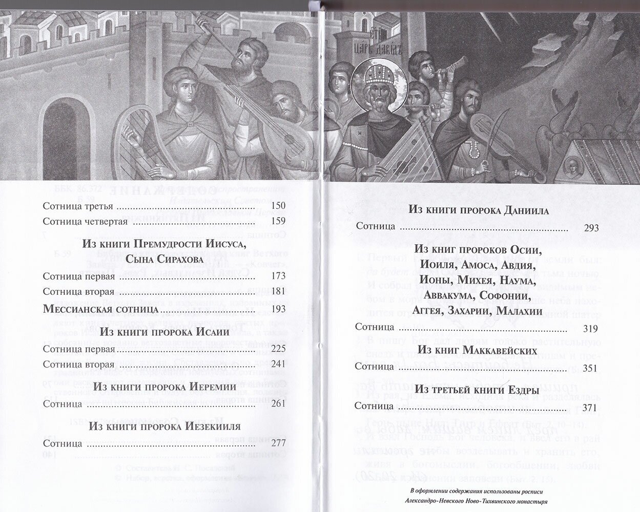 Предлагаемое издание представляет собой краткое изложение Ветхого Завета в изречениях, избранных из книг Священного Писания. Особый интерес представляют книги четырех великих пророков: святых пророков Исаии, Иеремии, Иезекииля и Даниила, а также собранные воедино ветхозаветные пророчества о пришествии в мир Спасителя, Сына Божия, и главных событий Его земной жизни. Составленные по древней традиции в виде ста изречений, именуемых сотницами, они раскрывают содержание и духовный смысл Божественного Откровения и будут, без сомнения, полезны всем, кому интересна Библейская история.