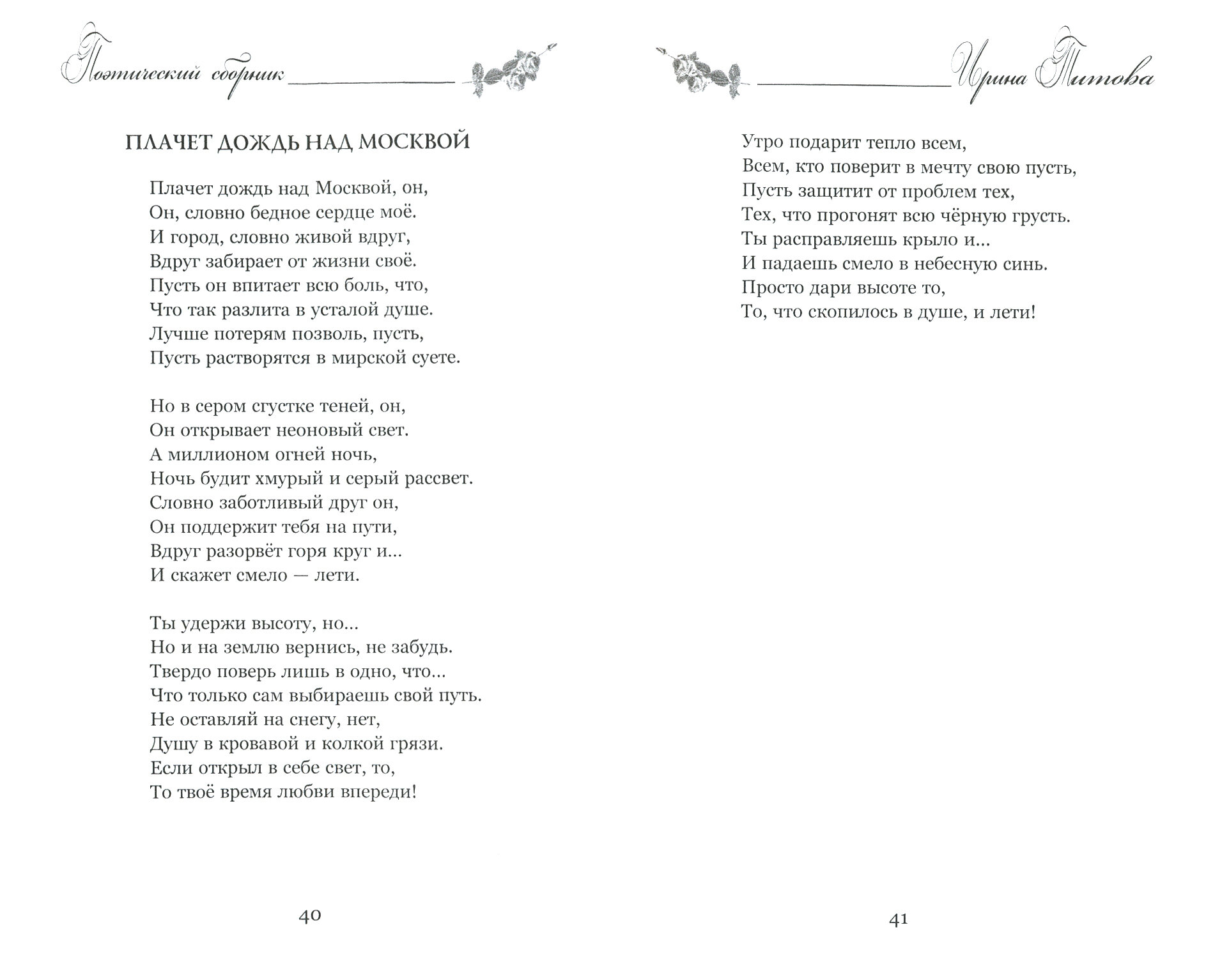 Настоящий поэтический сборник посвящен двум молодым и талантливым российским поэтам Ирине Титовой и Яну Березкину.