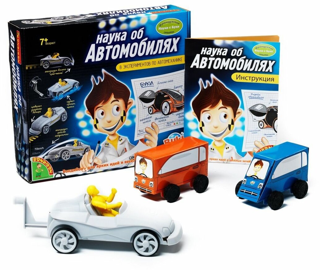 "" Французские опыты Науки с Буки Bondibon Бондибон - набор юного конструктора, который будет интересен и мальчикам, и девочкам. Ребенок выучит устройство автомобиля и сможет найти ответы для важные вопросы.